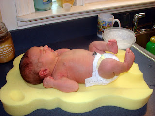 Then it was time for a little sponge bath - which Justin did not like at all! He did like having his head rubbed and shampooed - but who doesn't like a little massage!